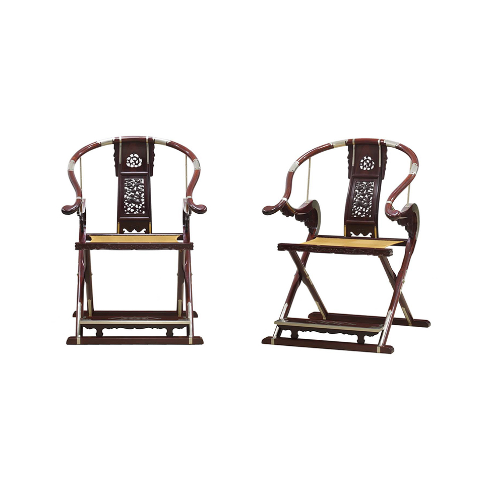Antique Chinese Folding Armchair with Openwork Qilin Motif