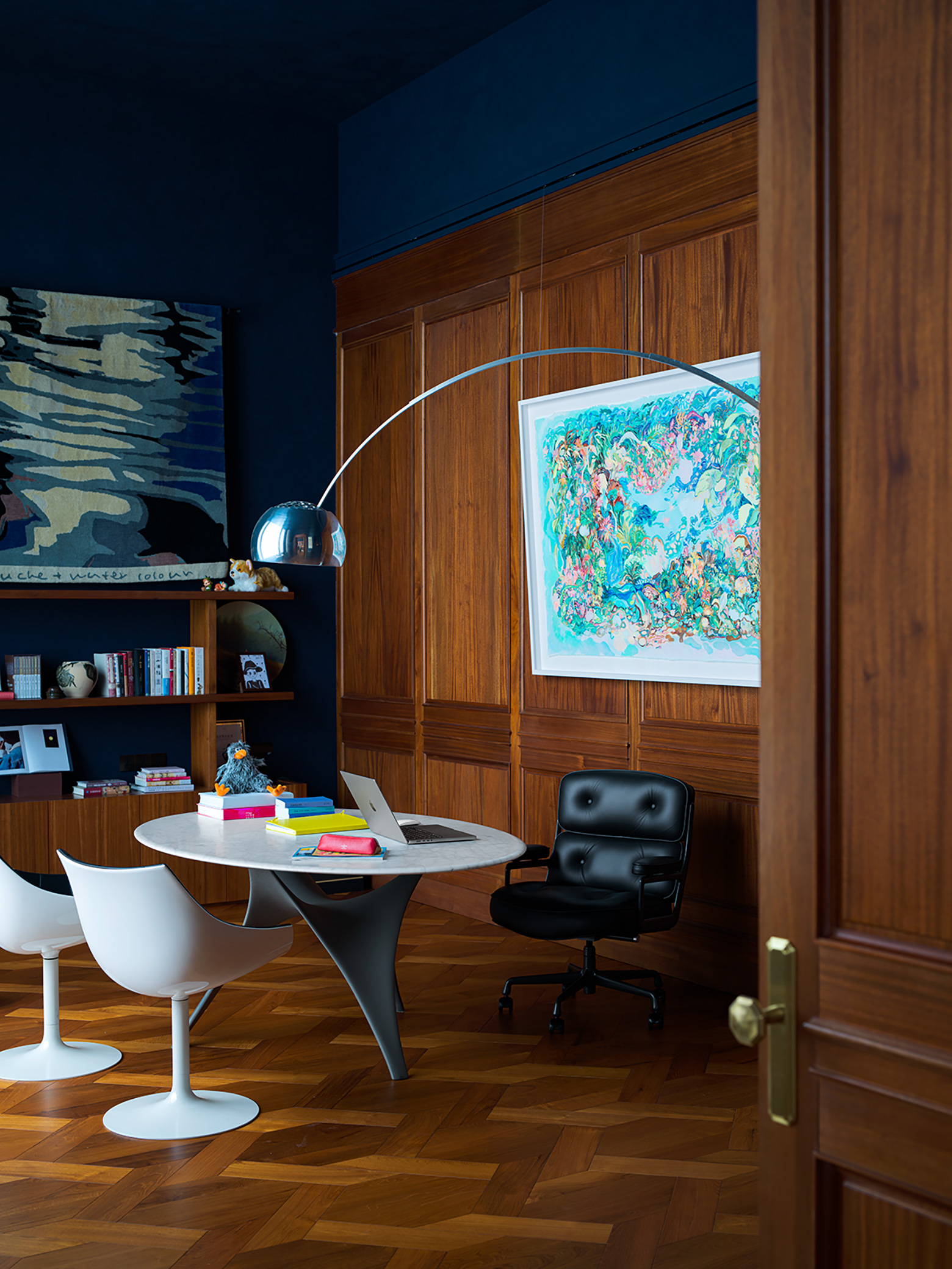 △Ground Floor Design Director's Office. Behind the chair hangs Tamaris Borrelly’s Water Edge. Water symbolizes wisdom, benefiting all things without contention; the painting's abundant water source nourishes surrounding flora and fauna, reflecting "altruism"—a key principle in 8C's design philosophy.